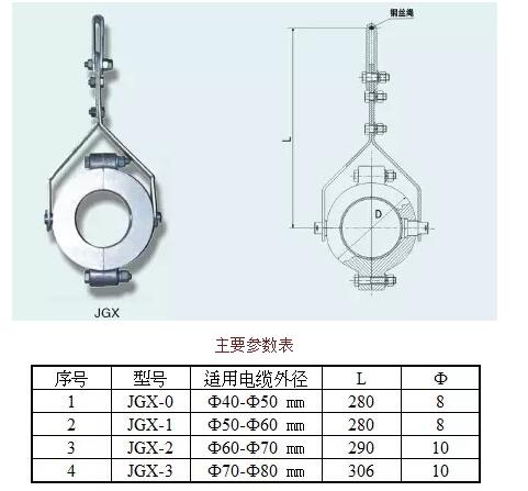 悬挂式夹具主要用于高空固定电缆,用于电缆的上下“一字型”固定。